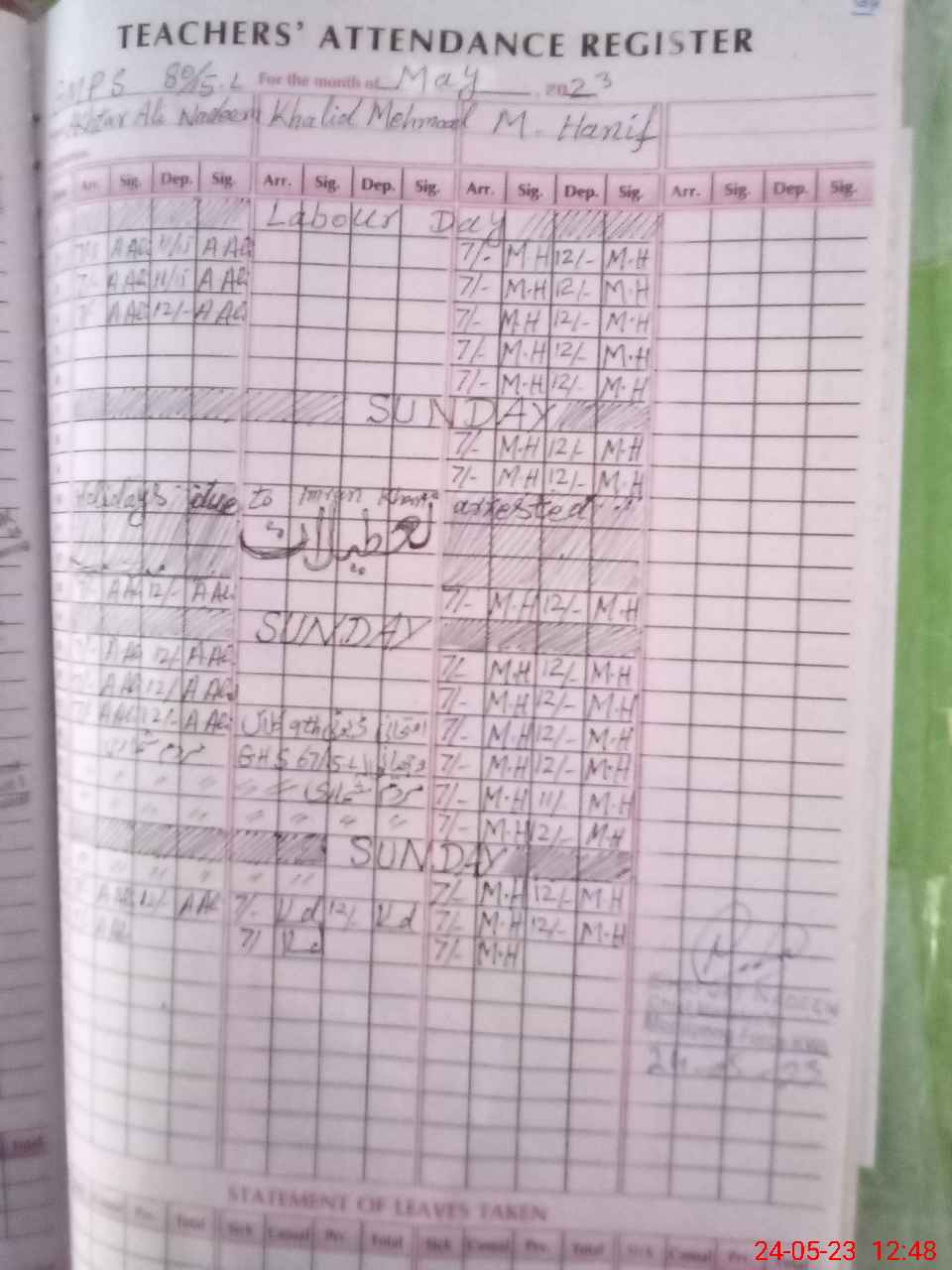 | CNIC | Full Name | Designation | R/C | Absence During Last Calender Month |