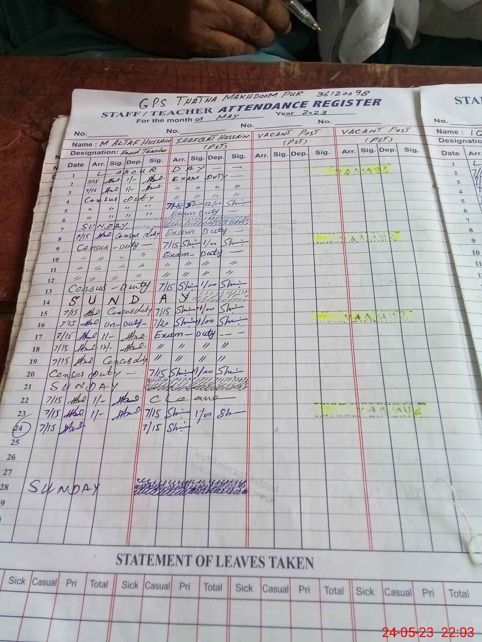 | Name: Mu**** Al**** Hu**** Designation: (School Headmaster's/Headmistress's) PST Phone/Cell Number: 03**** |