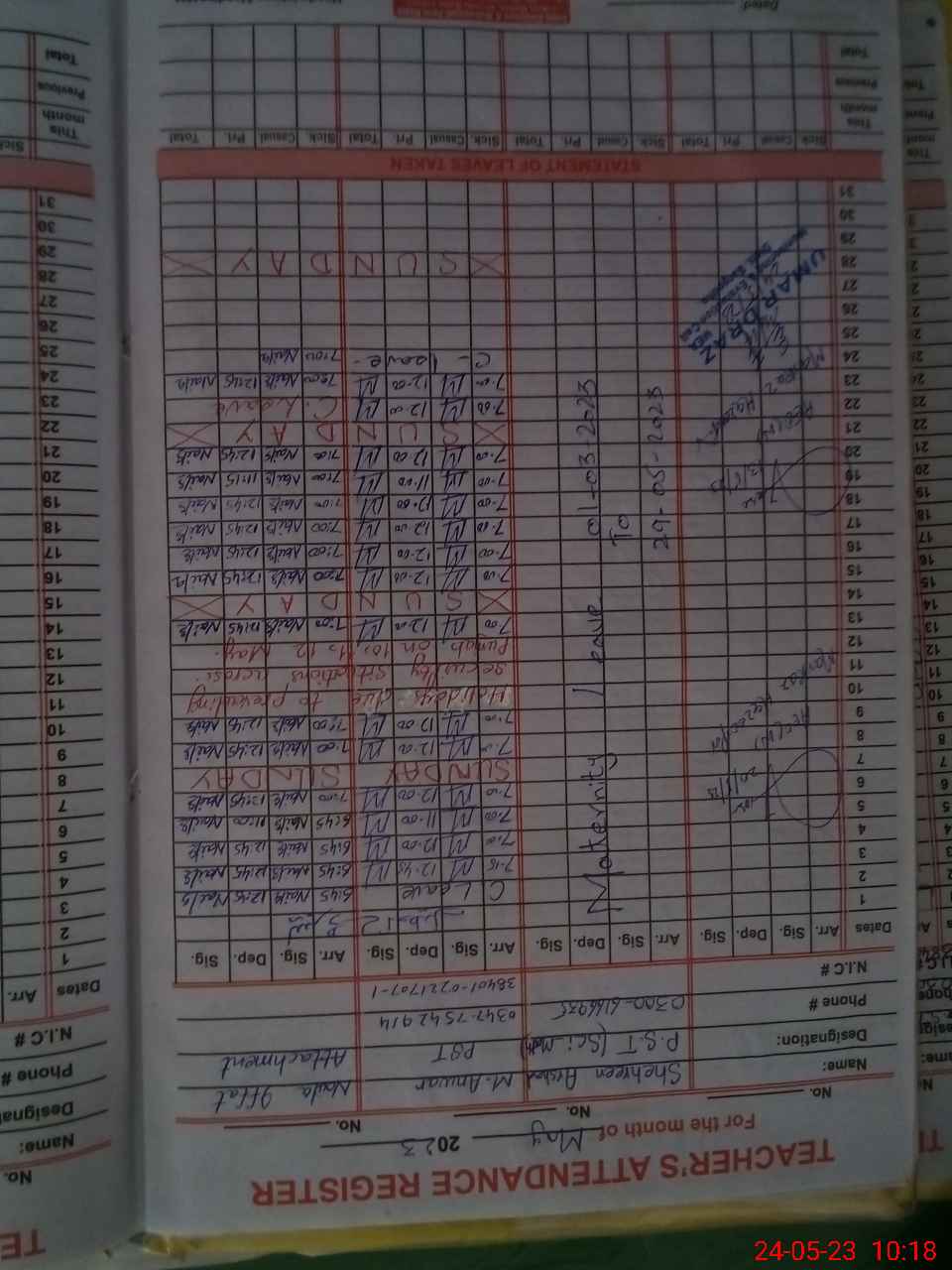| 38**** | Sh**** Ar**** | PST | Regular | 30 | 0 | 0 | 30 | 0 | 0 | 0 | 0 | 0 | Maternity |