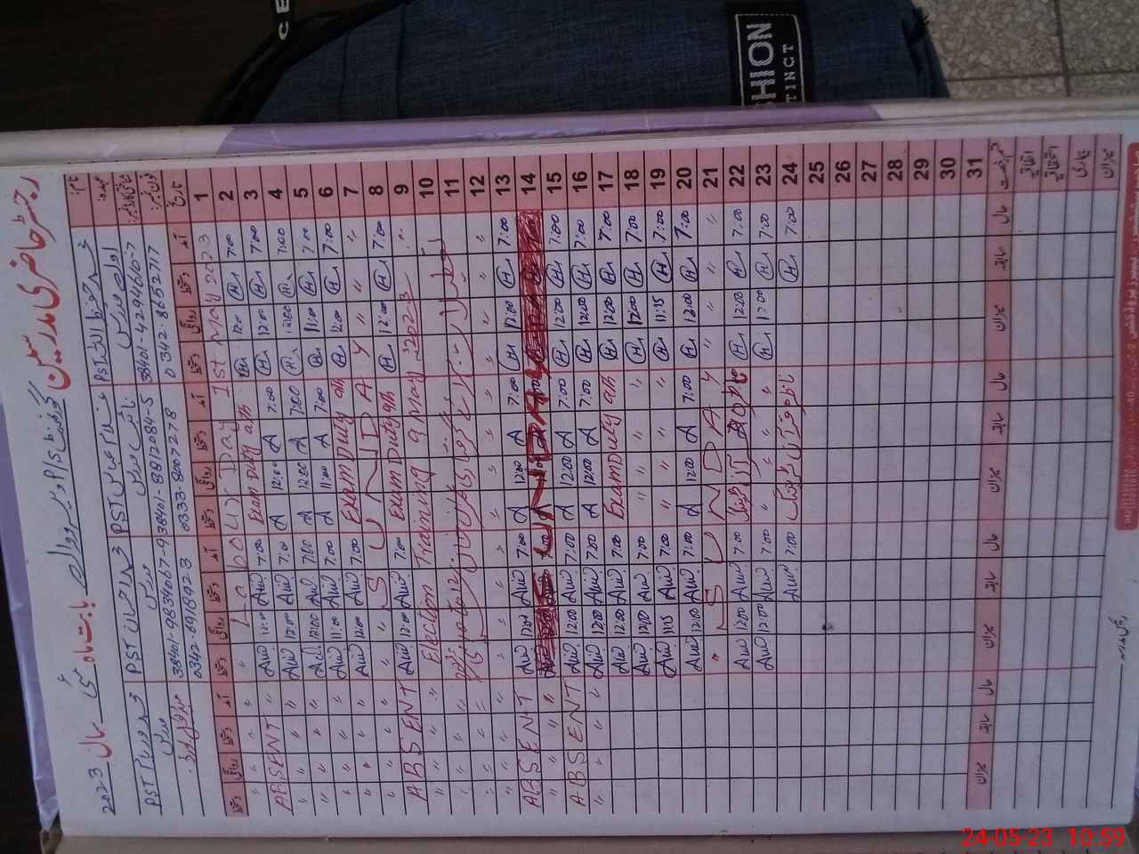 | Name: MHA**** UL**** Designation: (School Headmaster's/Headmistress's) PST Phone/Cell Number: 03**** |