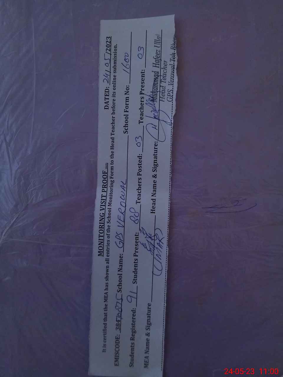 | EMIS Code: 38470875 | Name of School: GPS VEROWAL | |||