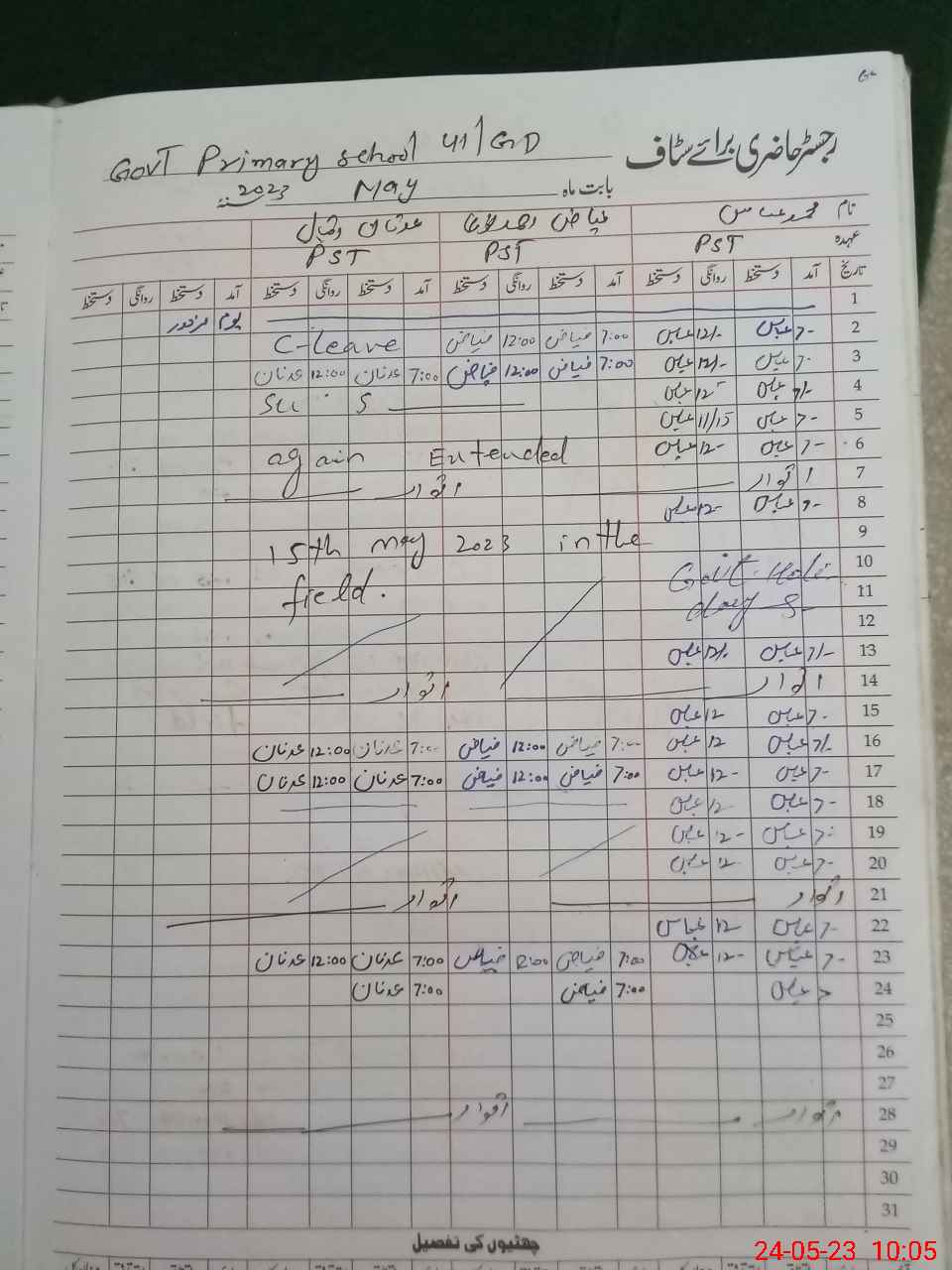 | CNIC | Full Name | Designation | R/C | Absence During Last Calender Month |