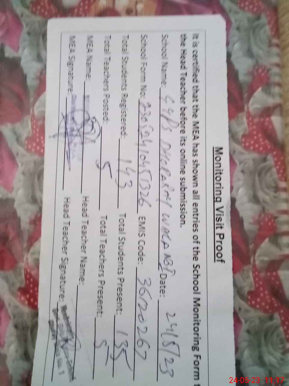 | EMIS Code: 36120267 | Name of School: GGPS DHORAY WALA NO.1 SHUJABAD | |||