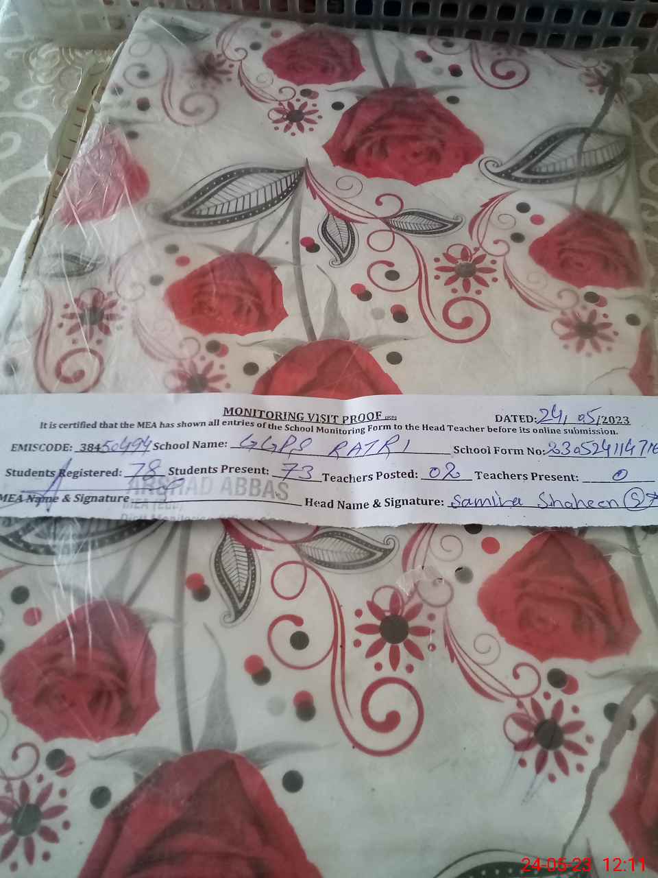 | Certified that this School was Inspected by the Undersigned MEA/DMO Today and the Information Stated Above is as Per Record. | |||||