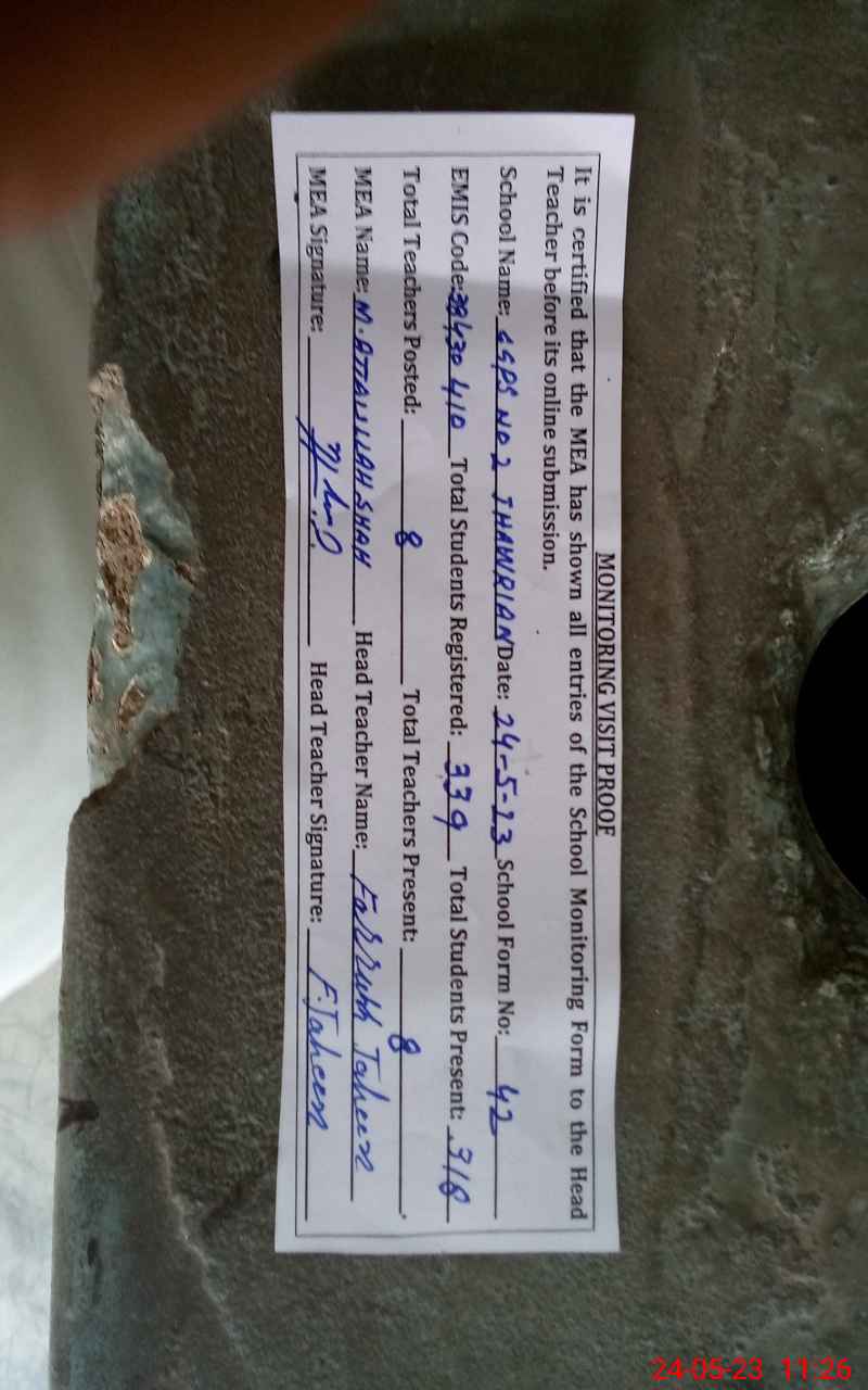 | Attendance Register | Head Teacher | MEA with School | Visit Proof |
