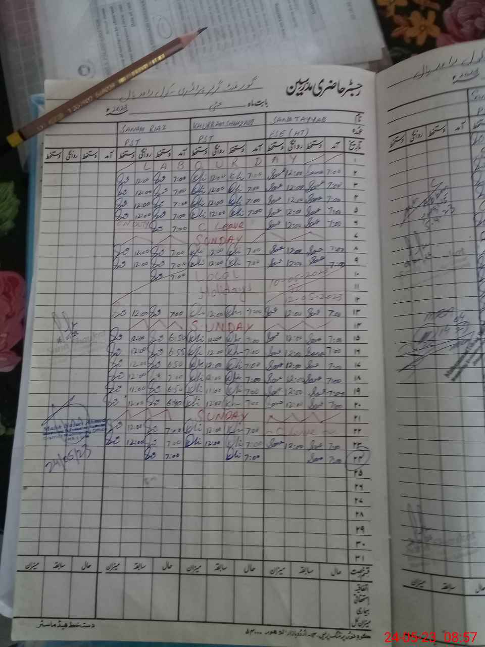 | CNIC | Full Name | Designation | R/C | Absence During Last Calender Month |
