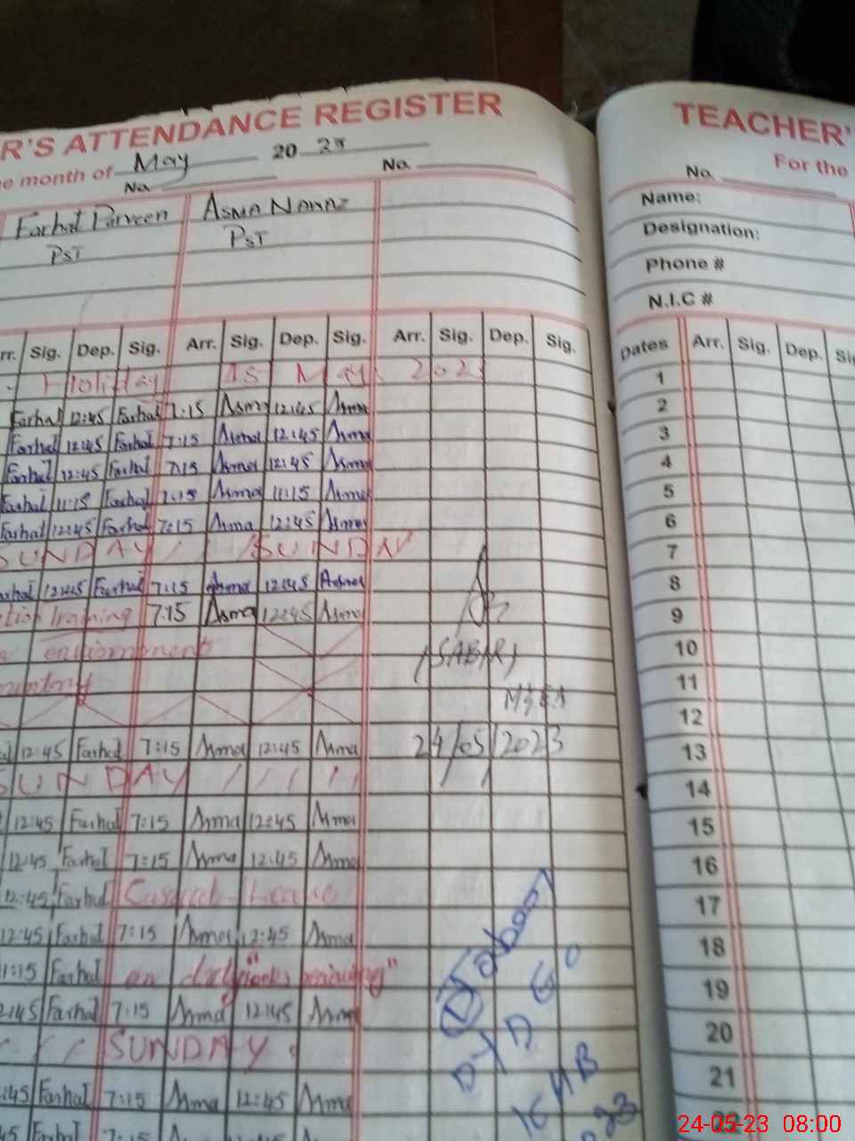 | CNIC | Full Name | Designation | R/C | Absence During Last Calender Month |