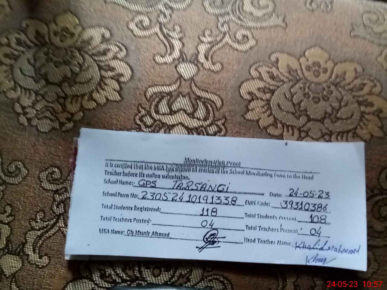| Name: KH**** MA**** Designation: (School Headmaster's/Headmistress's) PST Phone/Cell Number: 03**** |