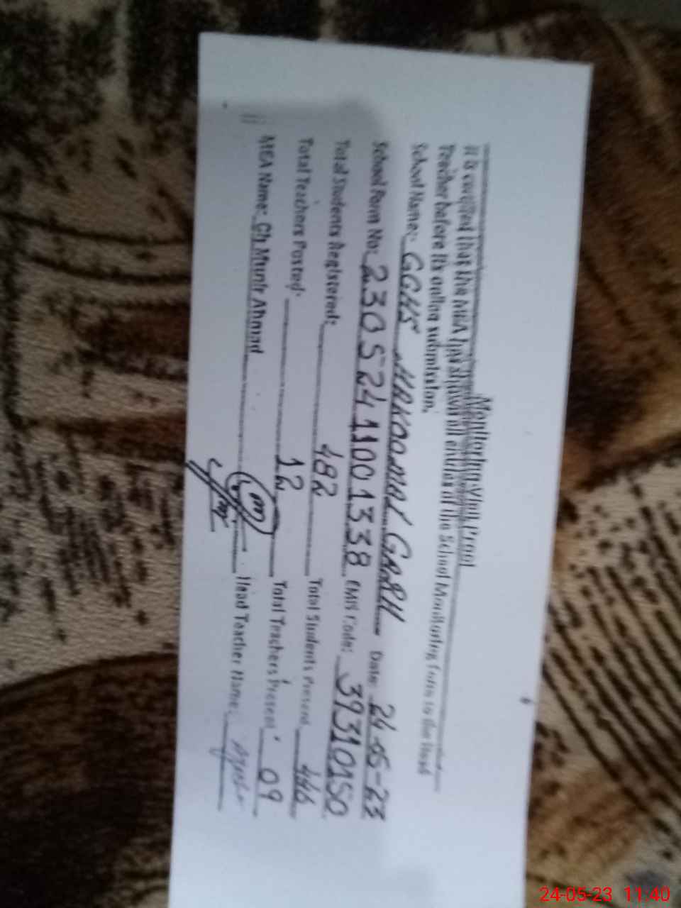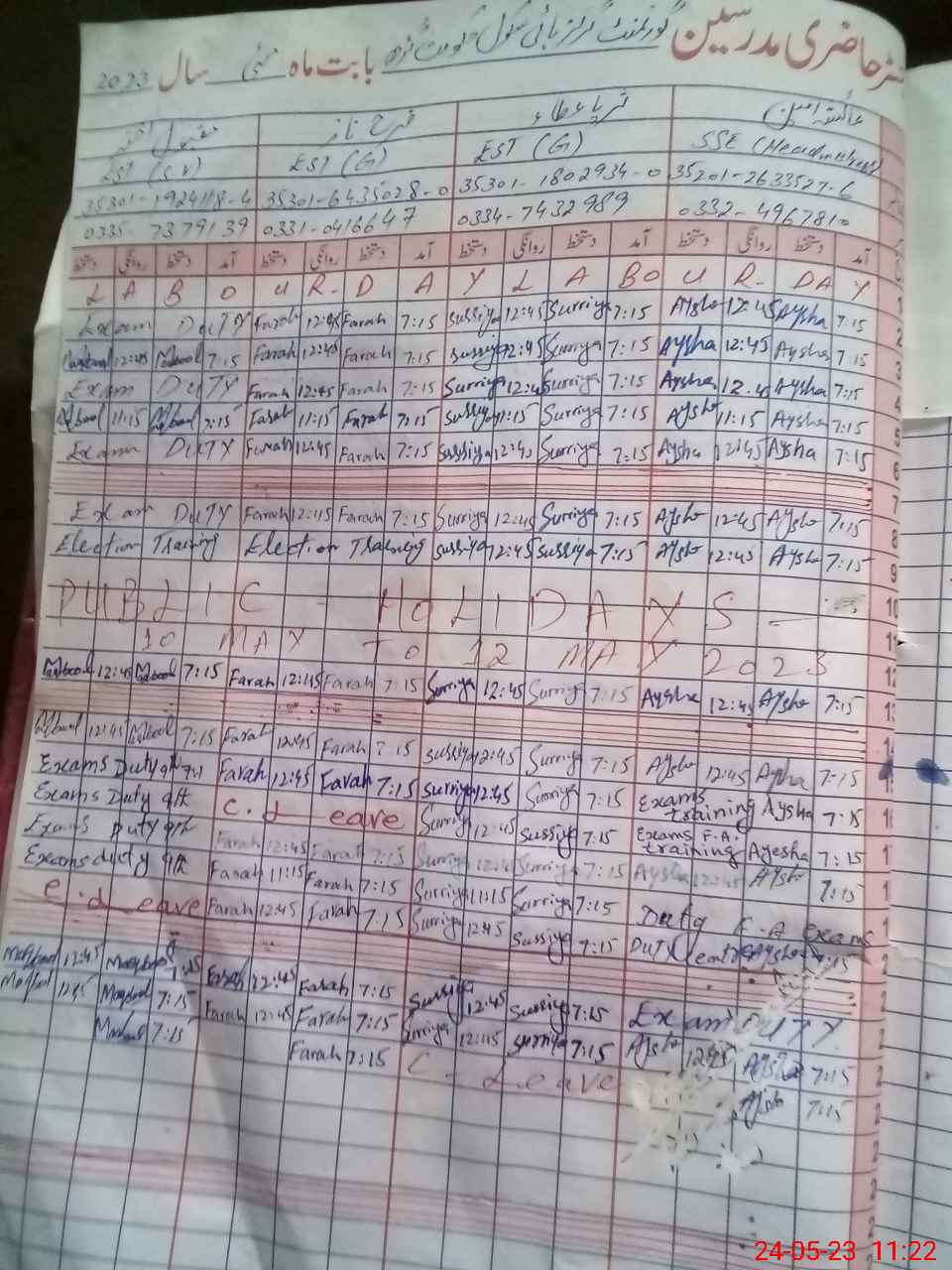| Name: AY**** AM**** Designation: (School Headmaster's/Headmistress's) S.S.T. Phone/Cell Number: 03**** |