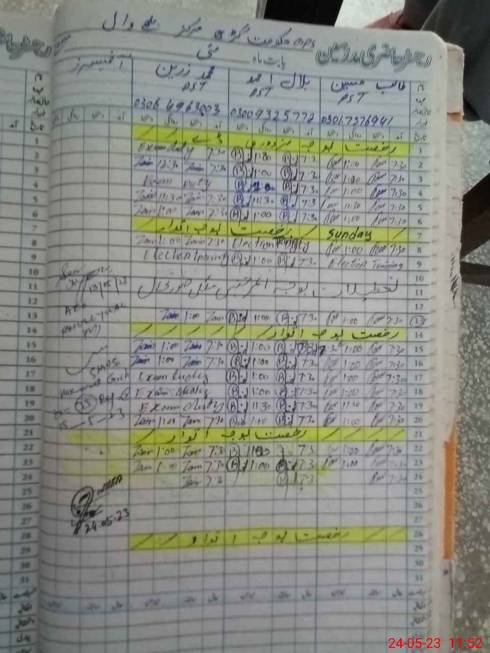 | CNIC | Full Name | Designation | R/C | Absence During Last Calender Month |