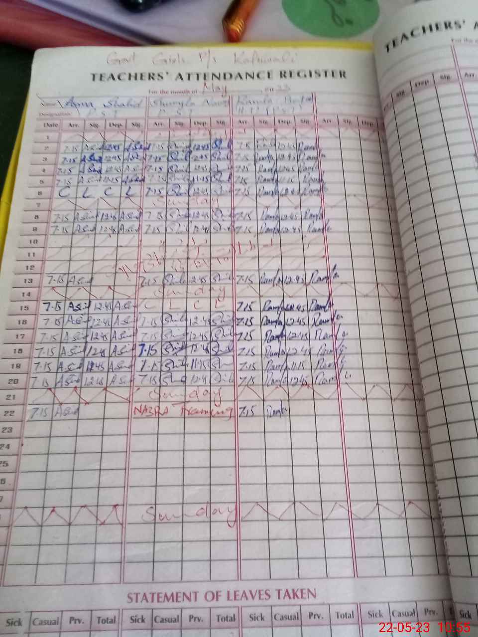 | CNIC | Full Name | Designation | R/C | Absence During Last Calender Month |