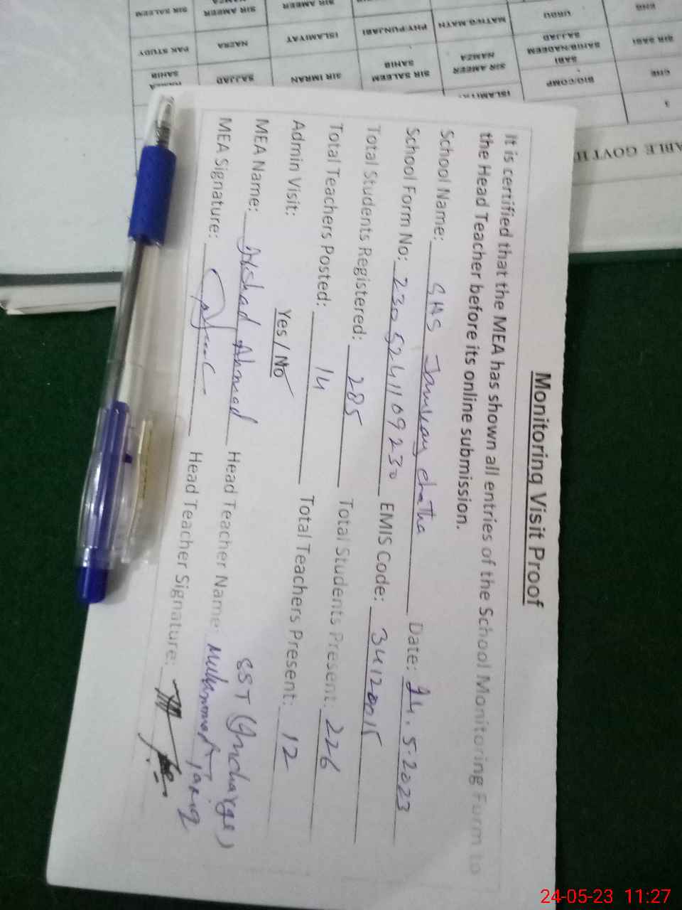 | EMIS Code: 34120015 | Name of School: GHS JAMKAY CHATHA | |||