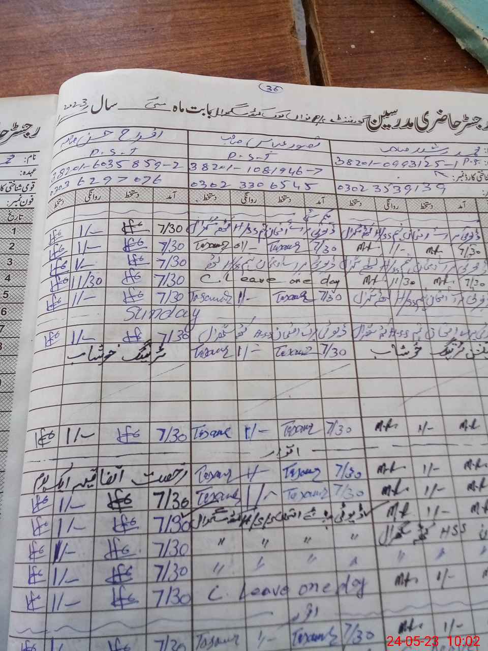 | CNIC | Full Name | Designation | R/C | Absence During Last Calender Month |