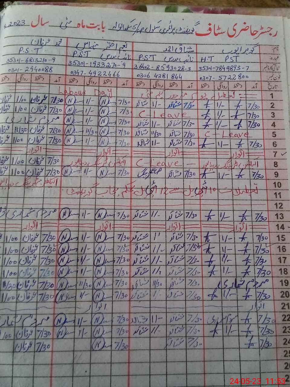 | CNIC | Full Name | Designation | R/C | Absence During Last Calender Month |