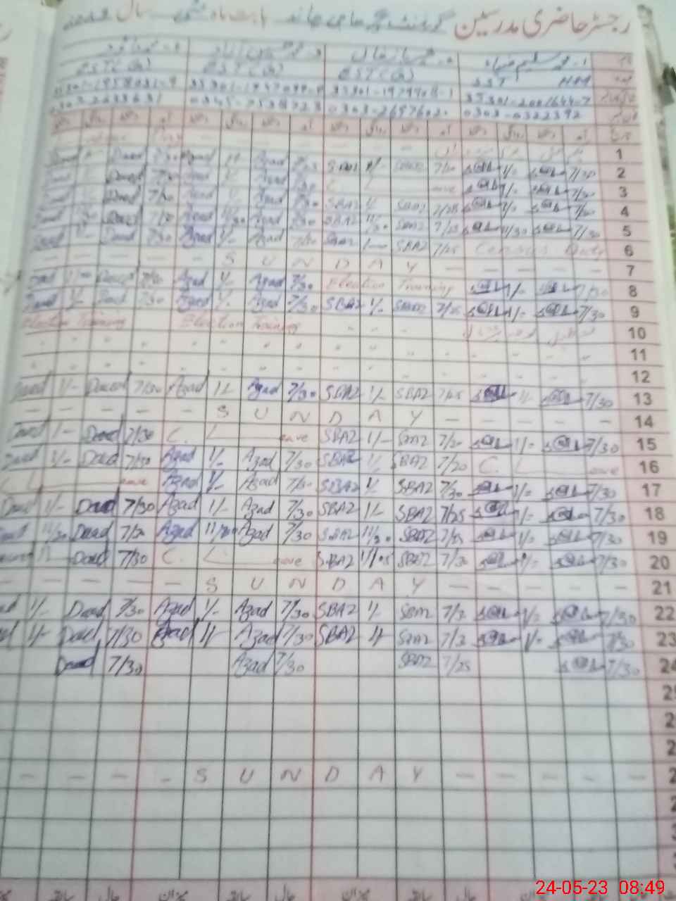 | CNIC | Full Name | Designation | R/C | Absence During Last Calender Month |