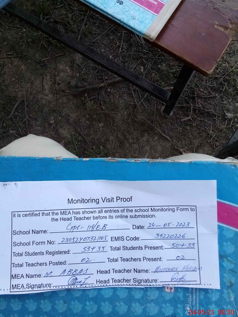 | EMIS Code: 39220226 | Name of School: GPS 119 EB ARIF WALA | |||