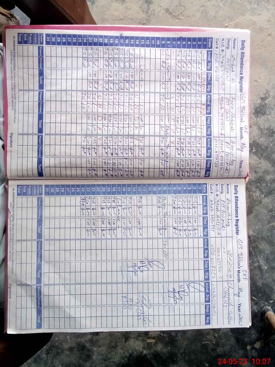| CNIC | Full Name | Designation | R/C | Absence During Last Calender Month |