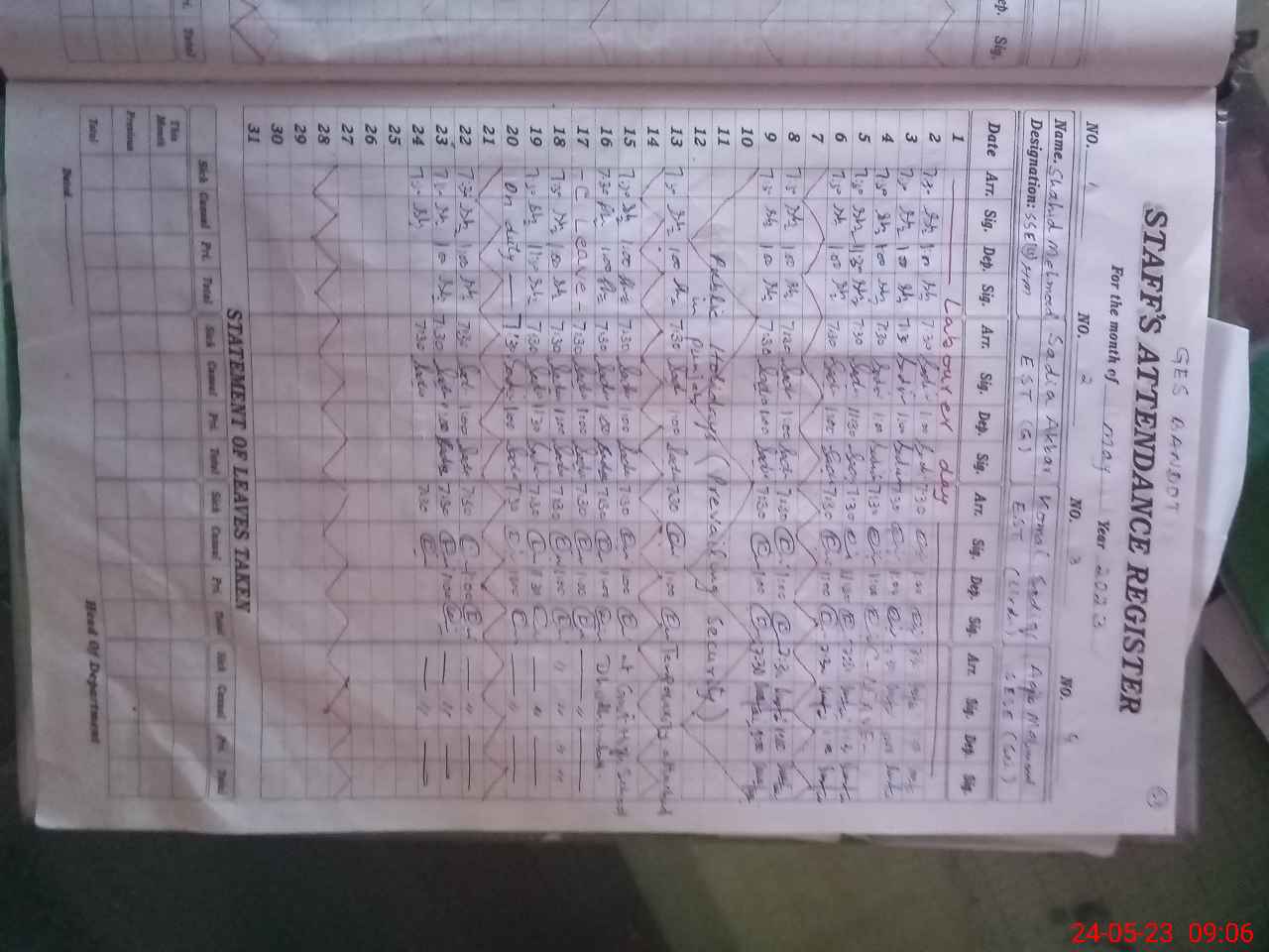 | Monitoring Date: 24-05-2023 | Start Time: 24-05-2023 08:55 AM | End Time: 24-05-2023 09:09 AM | Name of MEA: SH**** AK**** | |