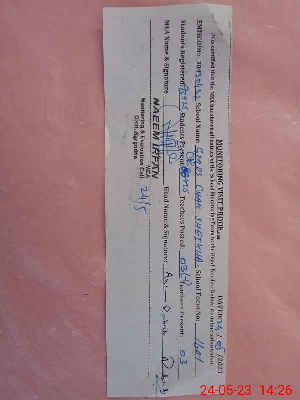 | EMIS Code: 38430431 | Name of School: GMPS CHAK SHEIKHA | |||