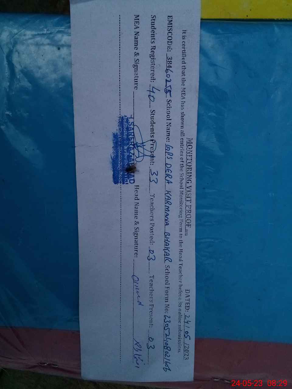 | Attendance Register | Head Teacher | MEA with School | Visit Proof |