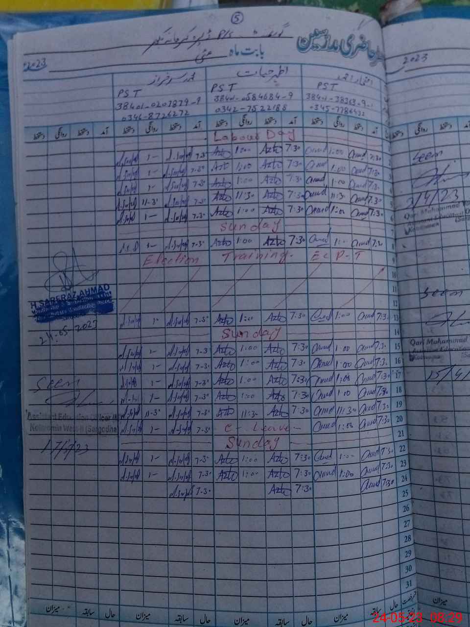 | Name: If**** Ah**** Designation: (School Headmaster's/Headmistress's) PST Phone/Cell Number: 03**** |