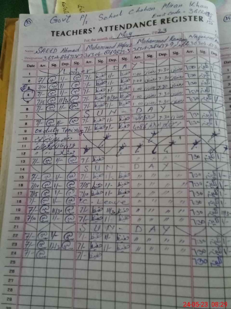 | CNIC | Full Name | Designation | R/C | Absence during last cal. month |