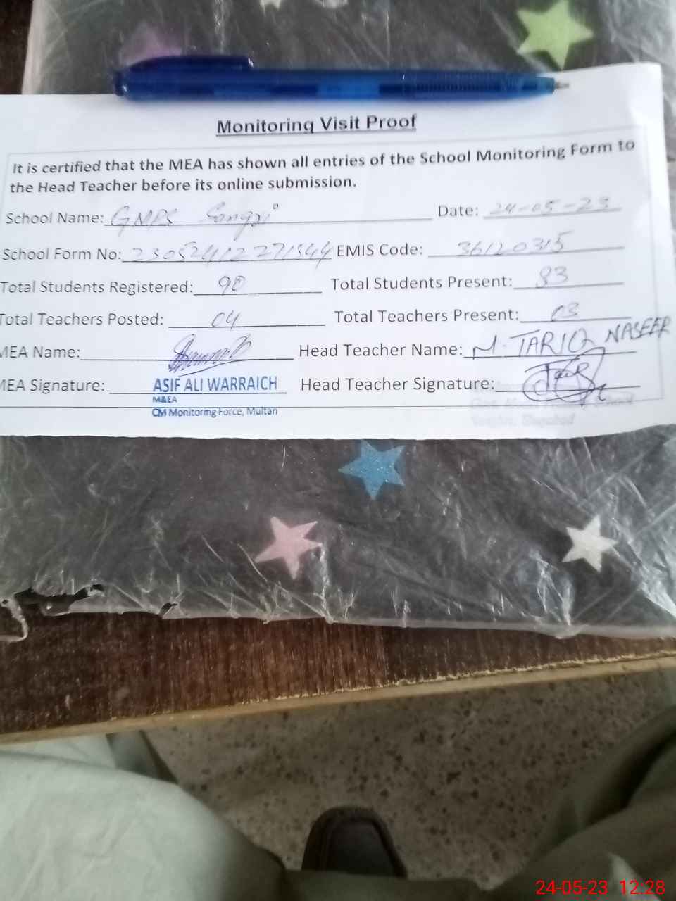 | Attendance Register | Head Teacher | MEA with School | Visit Proof |