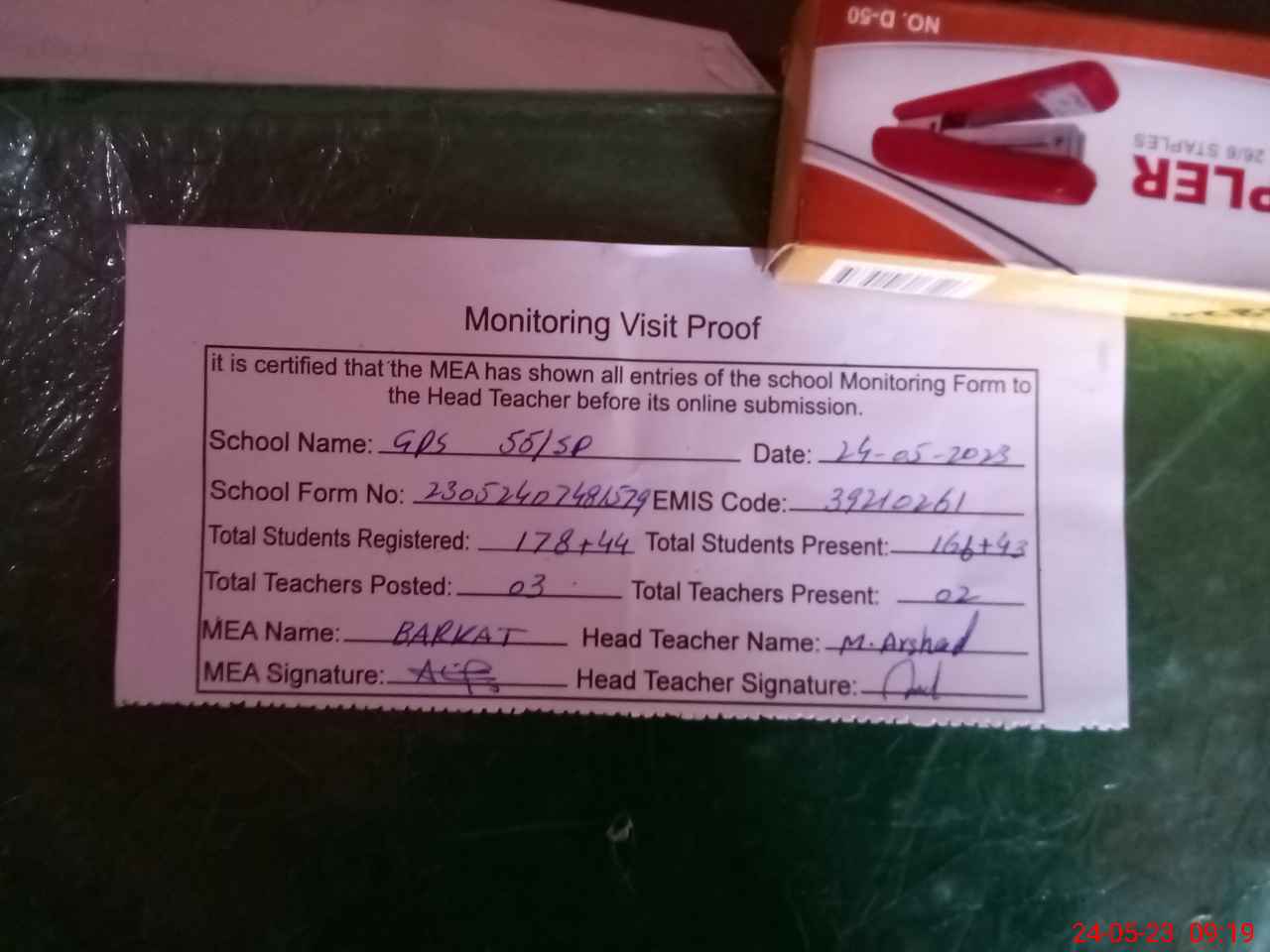 | EMIS Code: 39210261 | Name of School: GPS CHAK NO. 55 SP | |||