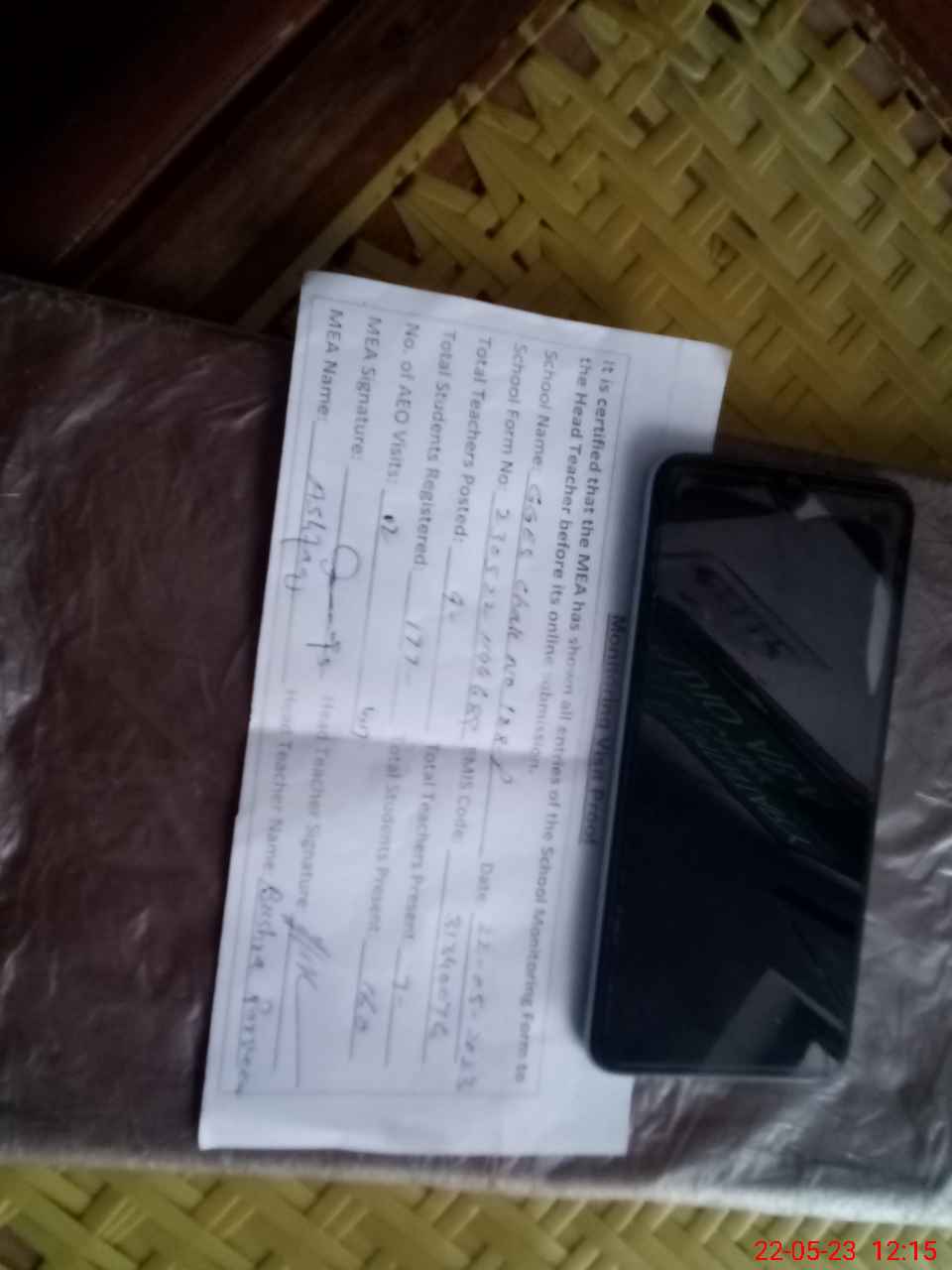 | Attendance Register | Head Teacher | MEA with School | Visit Proof |