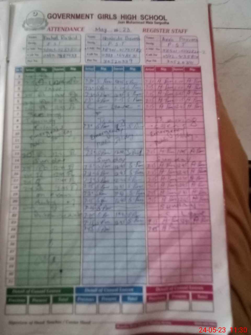 | Name: UF**** FE**** Designation: (School Headmaster's/Headmistress's) HEADMISTRESS Phone/Cell Number: 03**** |
