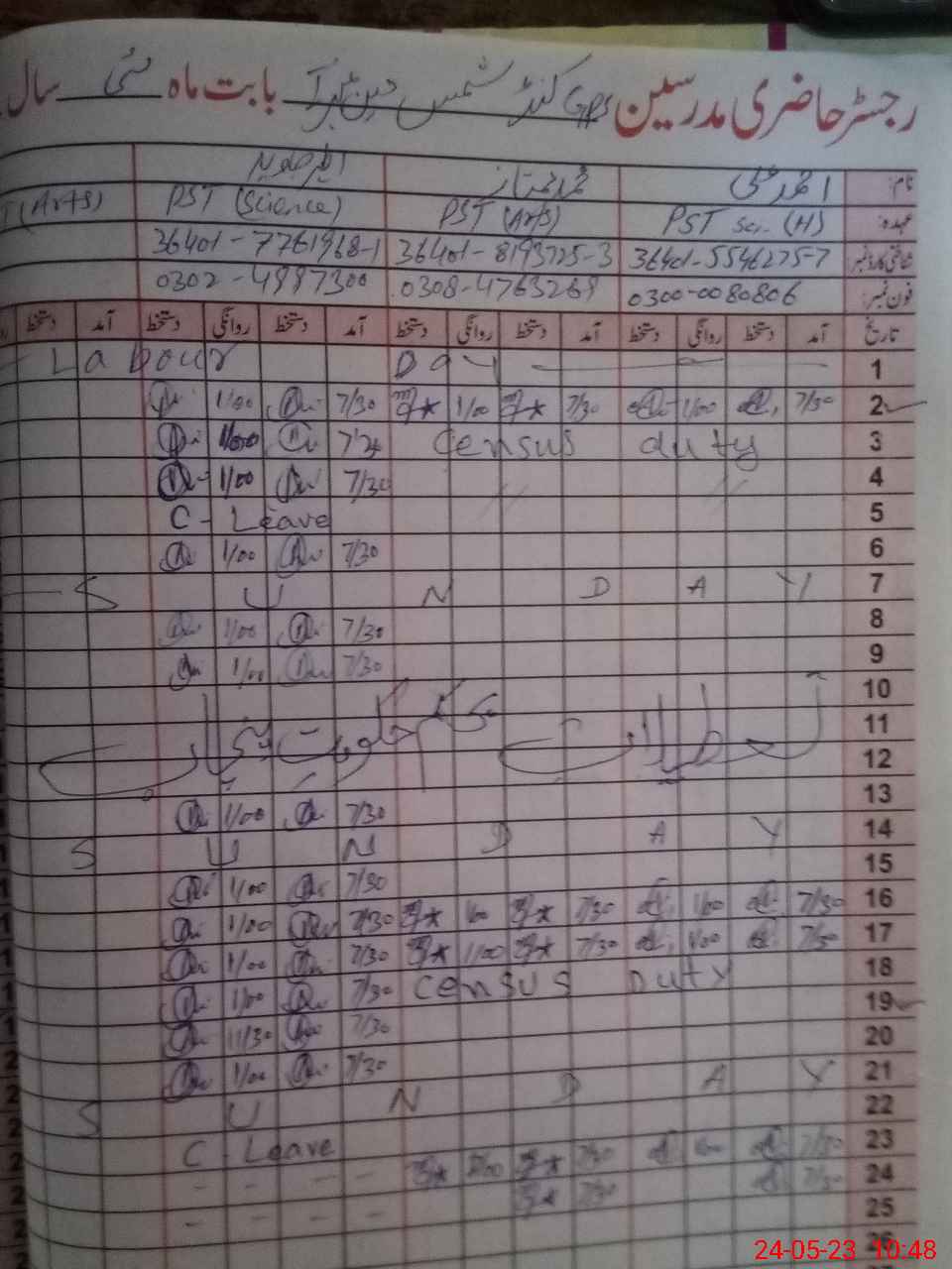 | Name: AH**** AL**** Designation: (School Headmaster's/Headmistress's) PST Phone/Cell Number: 03**** |