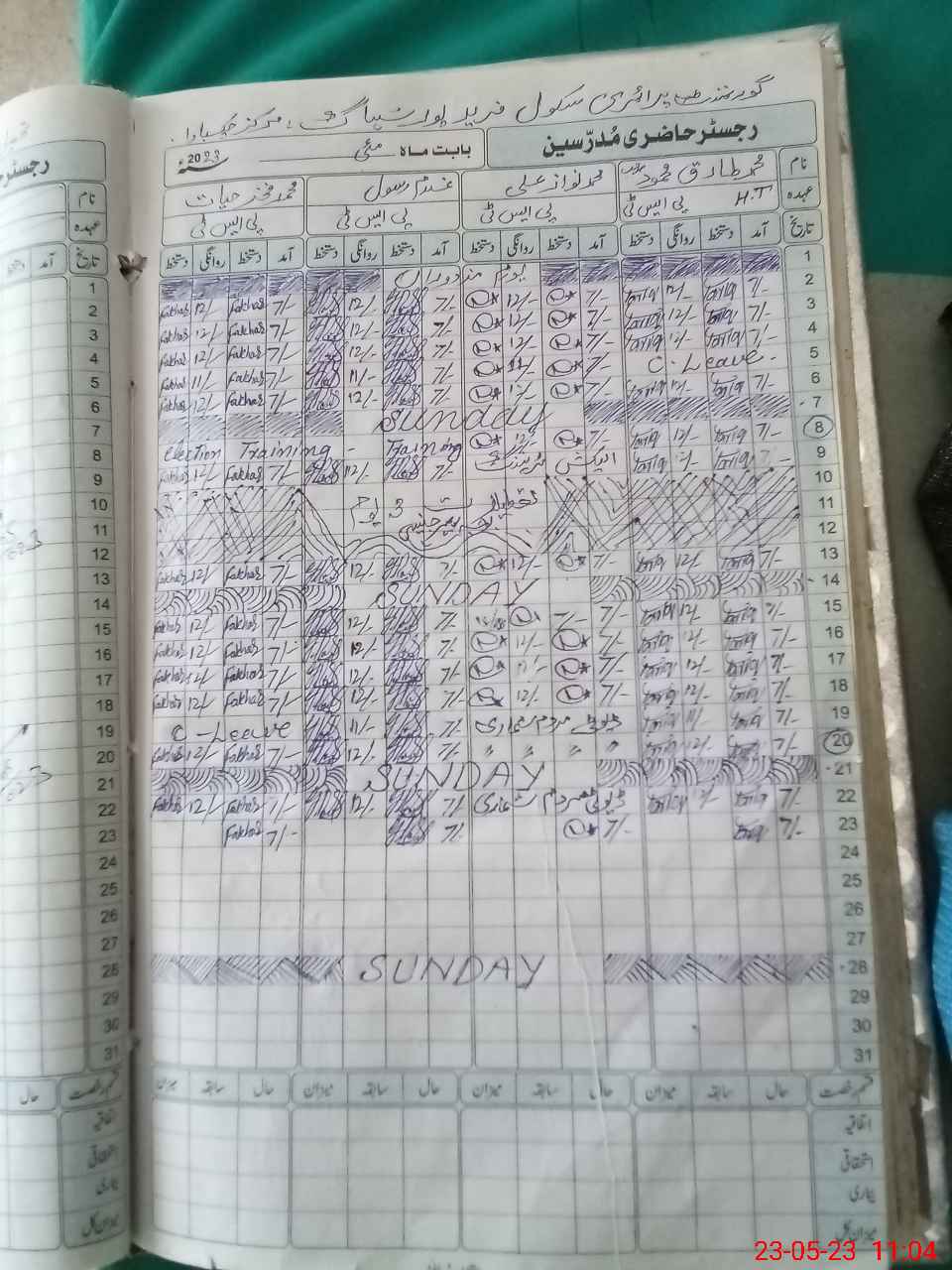 | CNIC | Full Name | Designation | R/C | Absence During Last Calender Month |