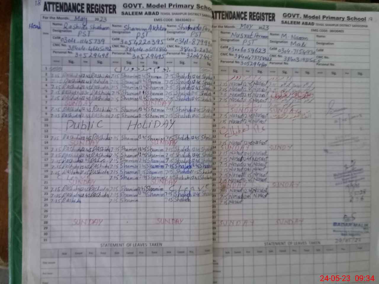 | Name: SH**** PA**** Designation: (School Headmaster's/Headmistress's) PST Phone/Cell Number: 03**** |