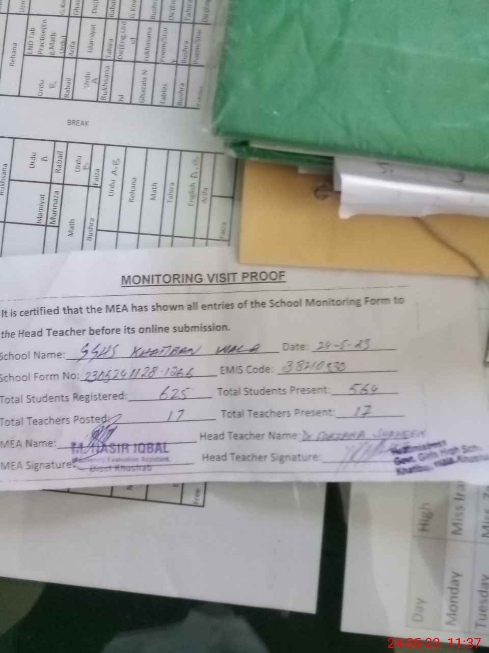 | EMIS Code: 38210530 | Name of School: GGHS KHATEEBAN WALA | |||