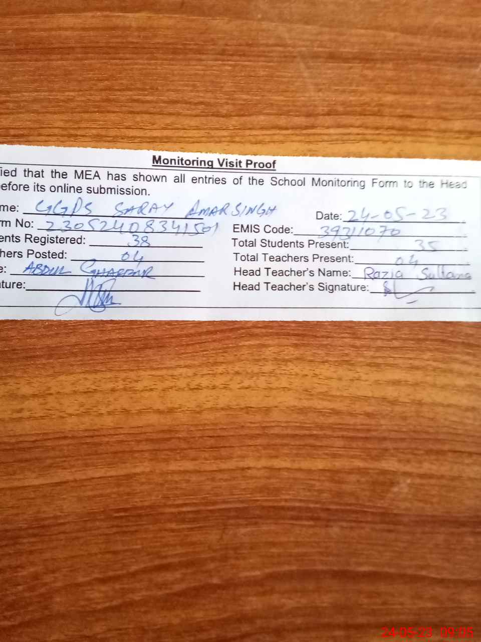 | EMIS Code: 39311070 | Name of School: GGPS SARAY AMIR SINGH | |||