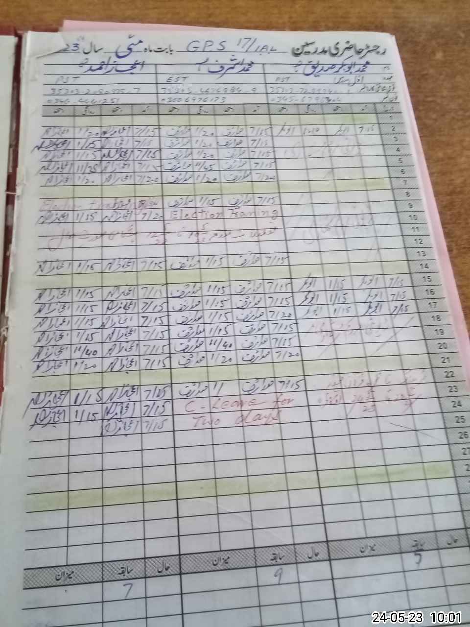 | CNIC | Full Name | Designation | R/C | Absence During Last Calender Month |