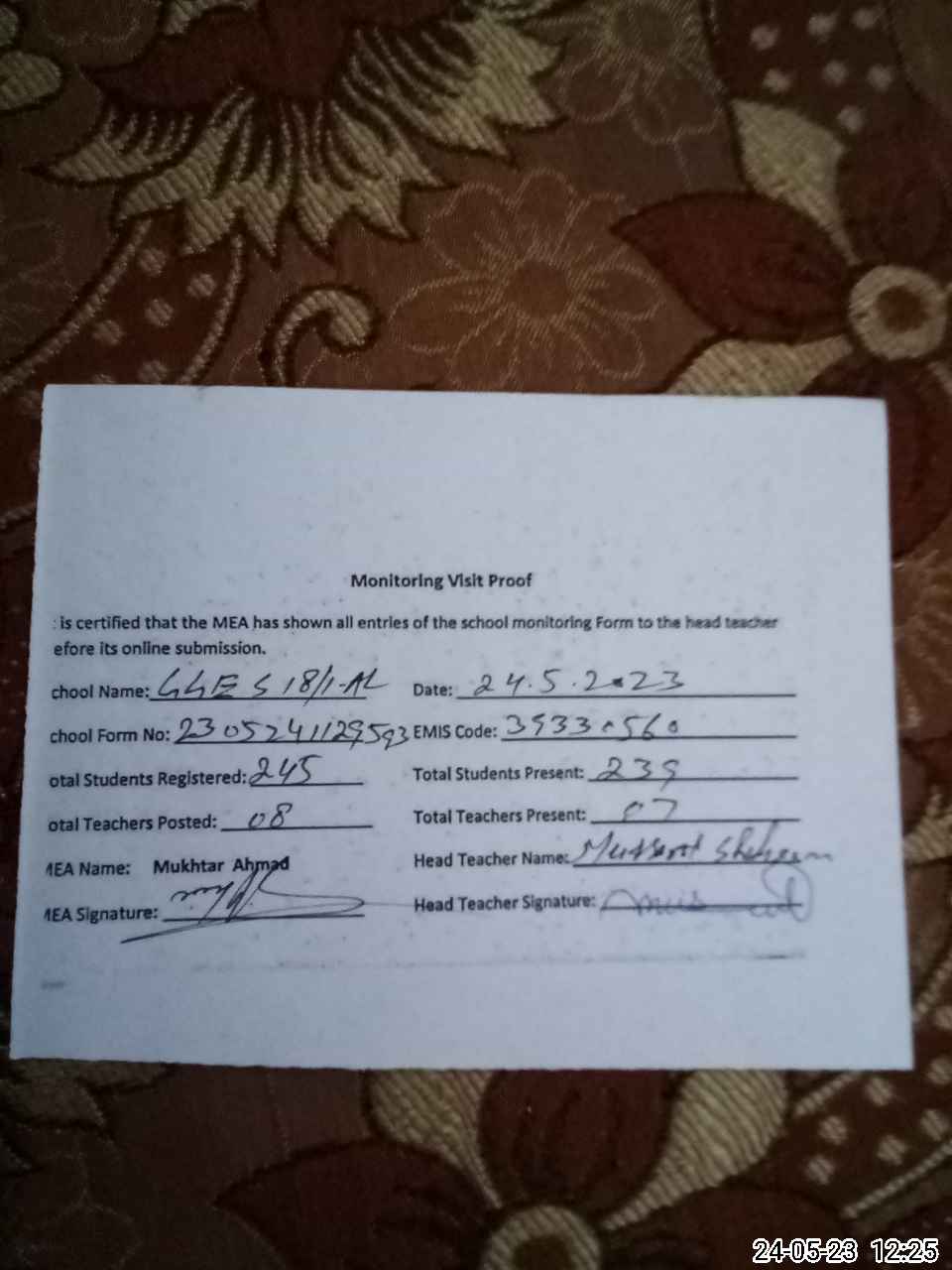 | Certified that this School was Inspected by the Undersigned MEA/DMO Today and the Information Stated Above is as Per Record. | |||||