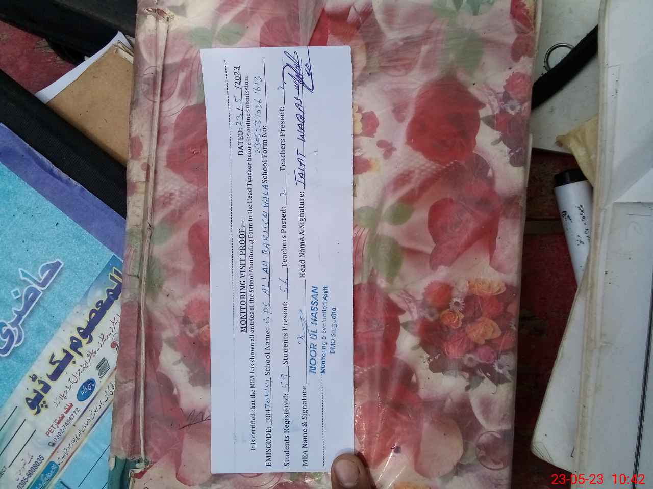 | Attendance Register | Head Teacher | MEA with School | Visit Proof |