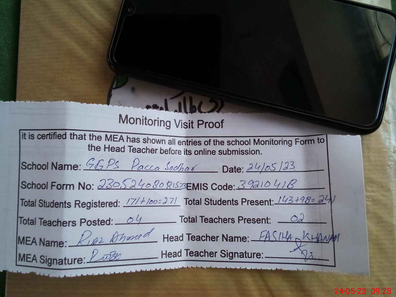 | EMIS Code: 39210418 | Name of School: GGPS PACCA SADHAR | |||