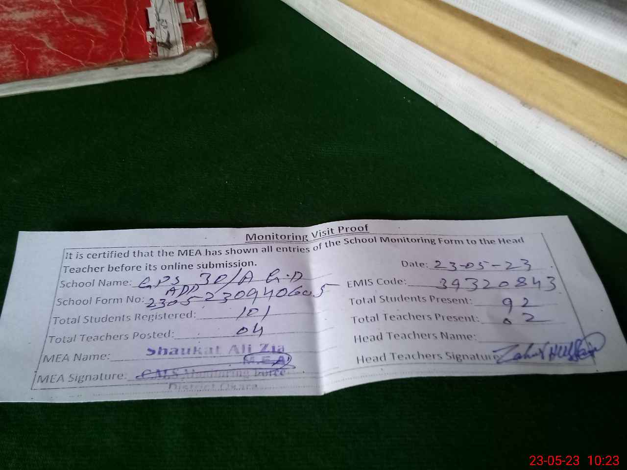 | EMIS Code: 39320843 | Name of School: GPS ADP CHAK NO. 30-A/G.D | |||