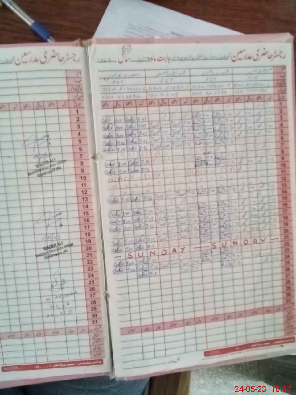 | CNIC | Full Name | Designation | R/C | Absence During Last Calender Month |