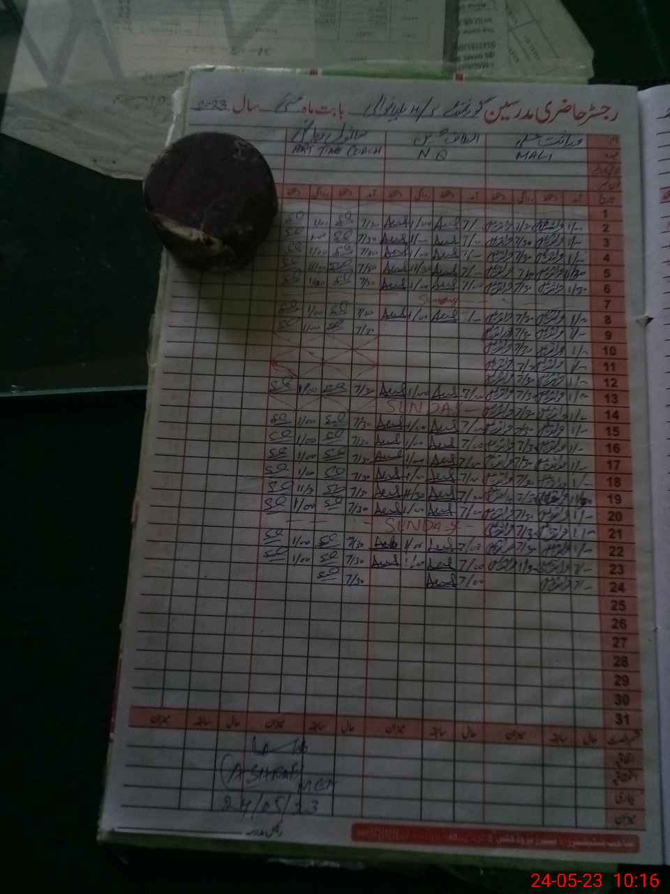 | CNIC | Full Name | Designation | R/C | Absence During Last Calender Month |