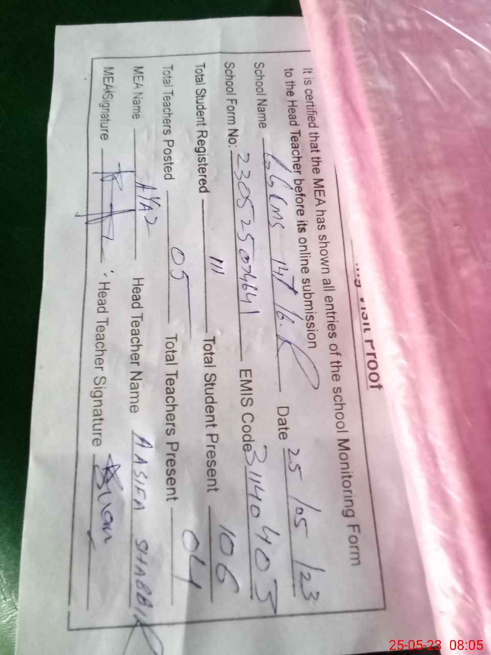 | Certified that this School was Inspected by the Undersigned MEA/DMO Today and the Information Stated Above is as Per Record. | |||||