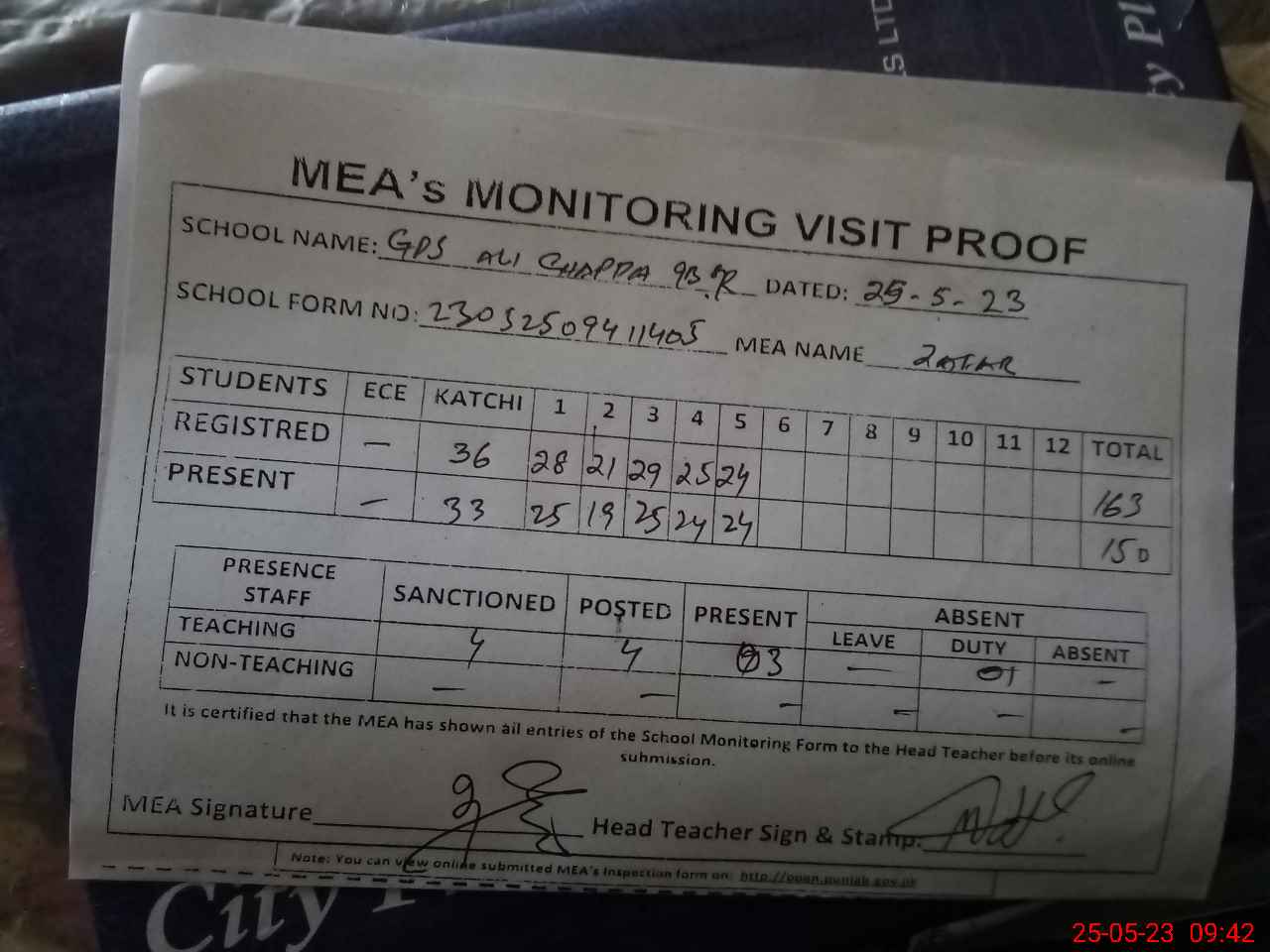 | EMIS Code: 36410261 | Name of School: GPS ALI CHAPPA, P/O 9-B/8-R, ABDUL HAKIM | |||