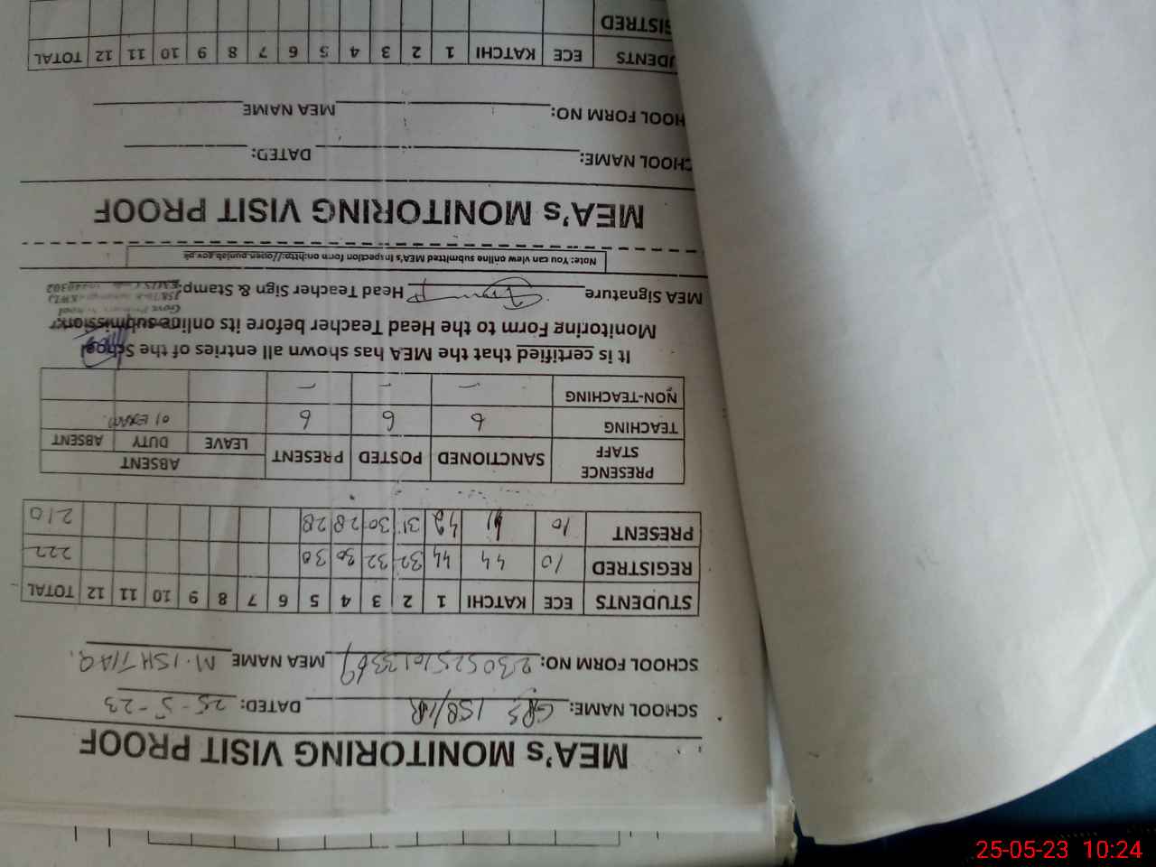 | Attendance Register | Head Teacher | MEA with School | Visit Proof |