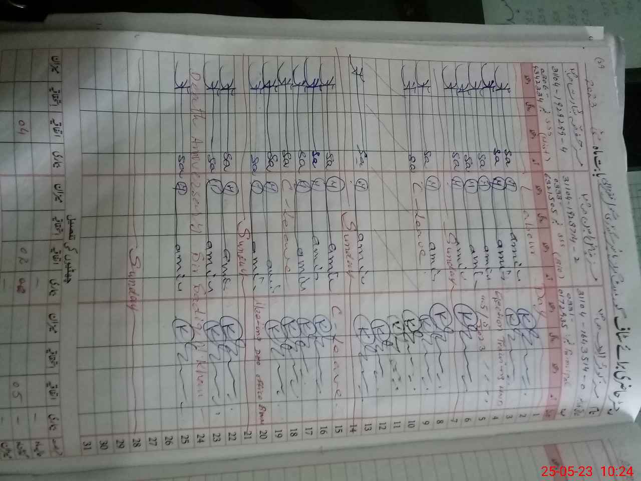 | 31**** | Ru**** Ra**** | Regular | 2 | 12 | 0 | 0 | 0 | 0 | 0 | 0 | 2 | Exam Duty | |
