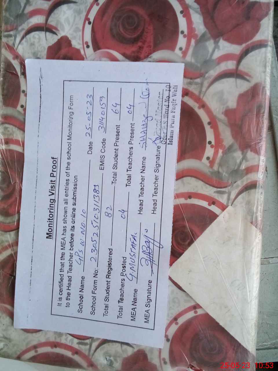 | EMIS Code: 31140159 | Name of School: GPS WARD NO 10 F | |||