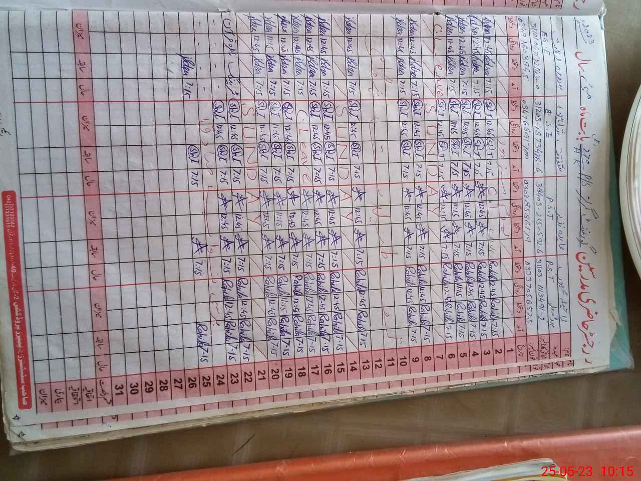 | CNIC | Full Name | Designation | R/C | Absence During Last Calender Month |