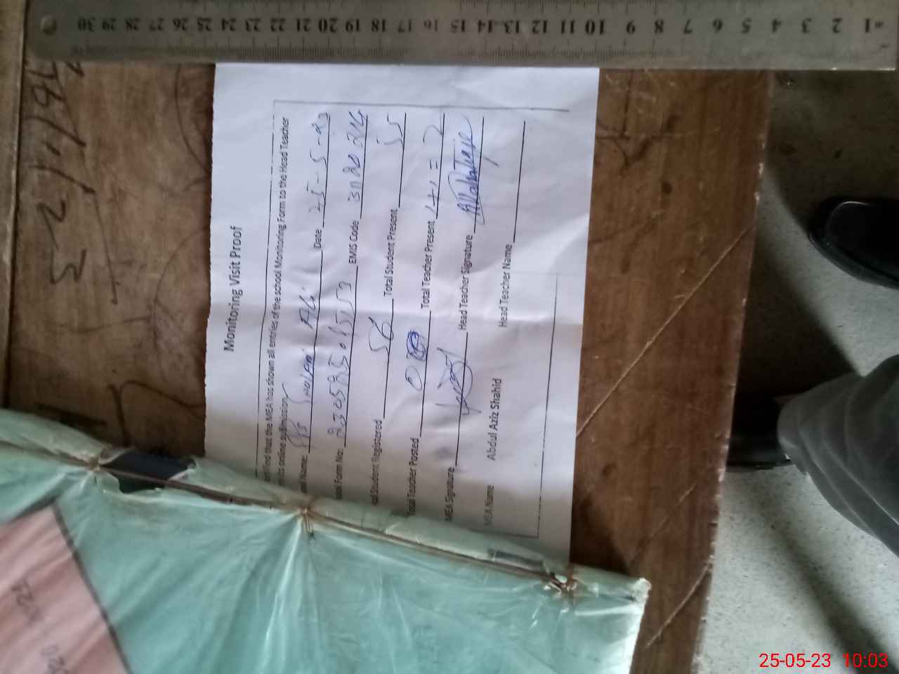 | Attendance Register | Head Teacher | MEA with School | Visit Proof |
