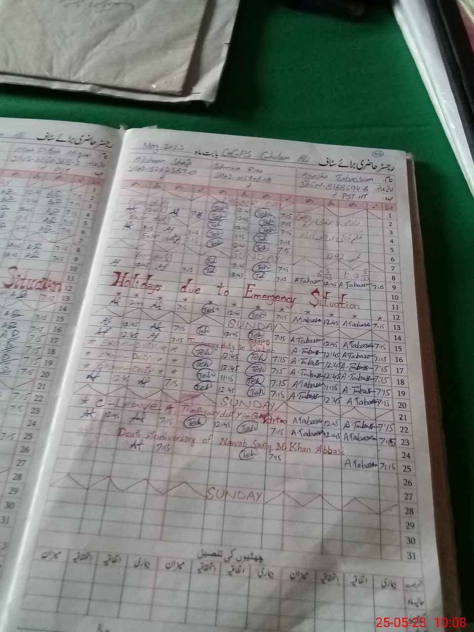 | CNIC | Full Name | Designation | R/C | Absence During Last Calender Month |